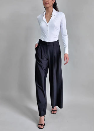 The Classic Wide Leg Trouser is designed to move seamlessly from work to weekend to more refined occasions. The high-rise, fluid silhouette feels polished, while the silky, breathable Italian performance fabric makes it comfortable and seasonless. A subtle sheen elevates the look without stiffness, and it styles effortlessly with a belt, tailored layers, or softer knits.