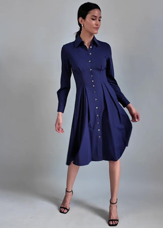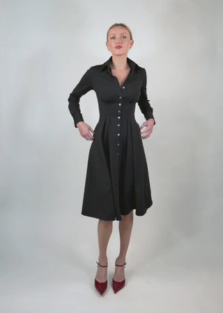 One dress. No backup required. The Long Sleeve Fit-and-Flare Shirt Dress is the piece you reach for when you want a complete, polished look without effort. Tailored through the waist and fluid through the skirt, it gives you shape without feeling fussy—easy to wear, easy to trust, and ready for whatever the day turns into.
